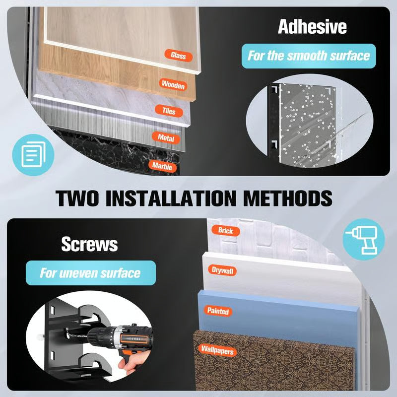 Two Installation Methods: Hat Rack for wall can be installed in two ways: self-adhesive and screw drilled holes. You can choose the appropriate method according to the usage scenario. Note: Due to the firm sticking, please confirm the direction and position before sticking, the part of the wall plate with holes is the top to avoid forming repeated tears.